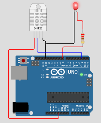Sensor DHT11 → Arduino → Serial Monitor → LED