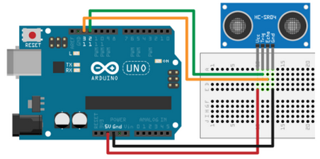 Sensor ultrasonik menggunakan dua pin utama, yaitu TRIG dan ECHO.